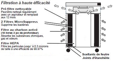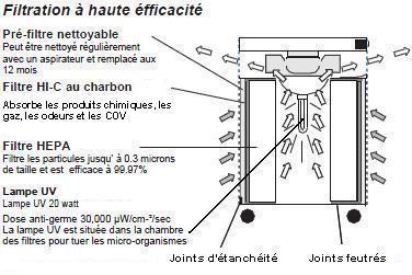ATTENTION: Un purificateur d'air munis d’un filtre HEPA qui n'est pas parfaitement étanche peux laisser passé les virus et autres substances dangereuses.