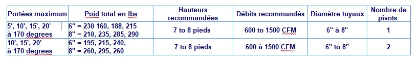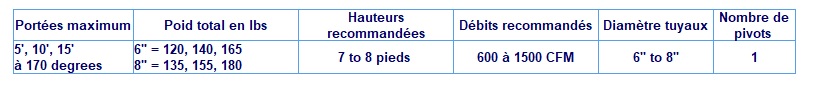 la portée des bras AIR-O-TUBE et des enroleurs AIR-O-MONOX